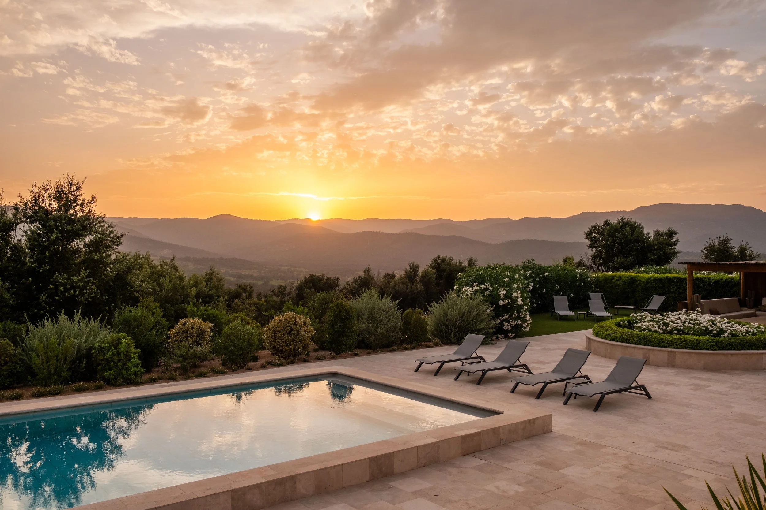 With unobstructed 360° views of the Golfe de Saint Tropez and surrounding Massif des Maures mountains, Mas de Faucon is set in a private and secure location just a short drive from Grimaud, St. Tropez and Ramatuelle.